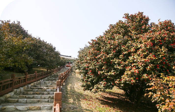 • 산책로를 따라 걸으며 동백꽃 감상