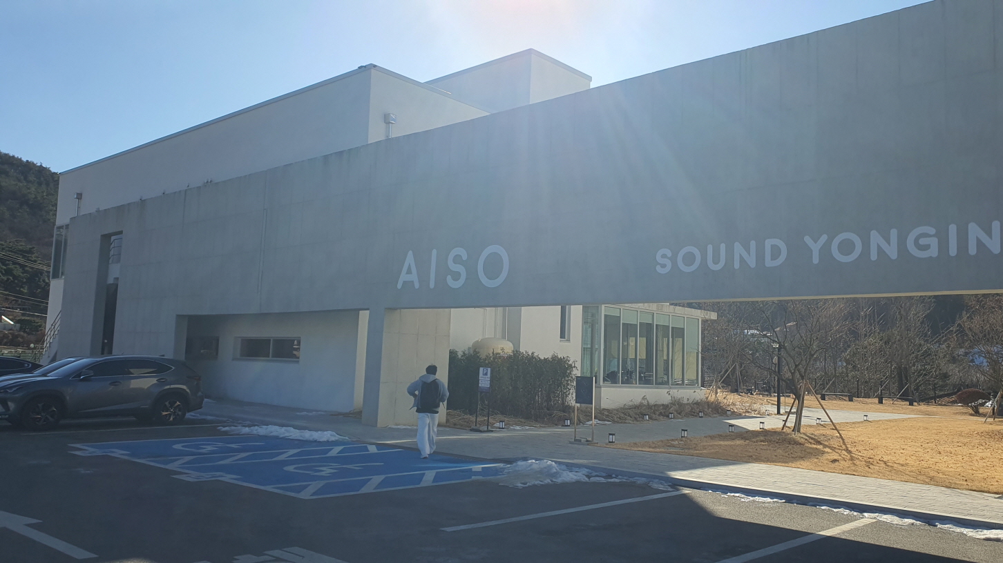 주차장쪽으로 이렇게 입구가 보입니다. AISO 라는 글자가 보입니다.