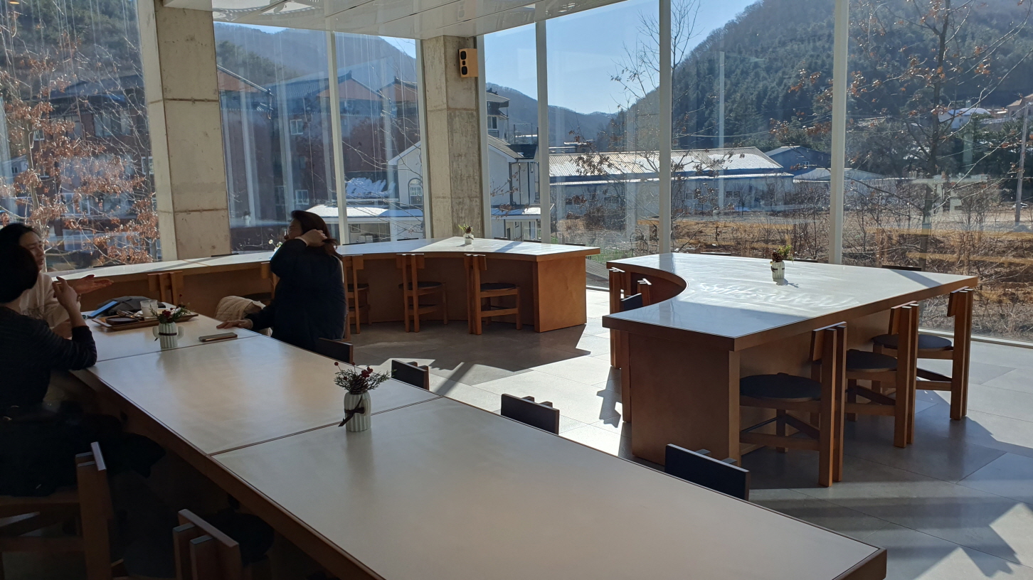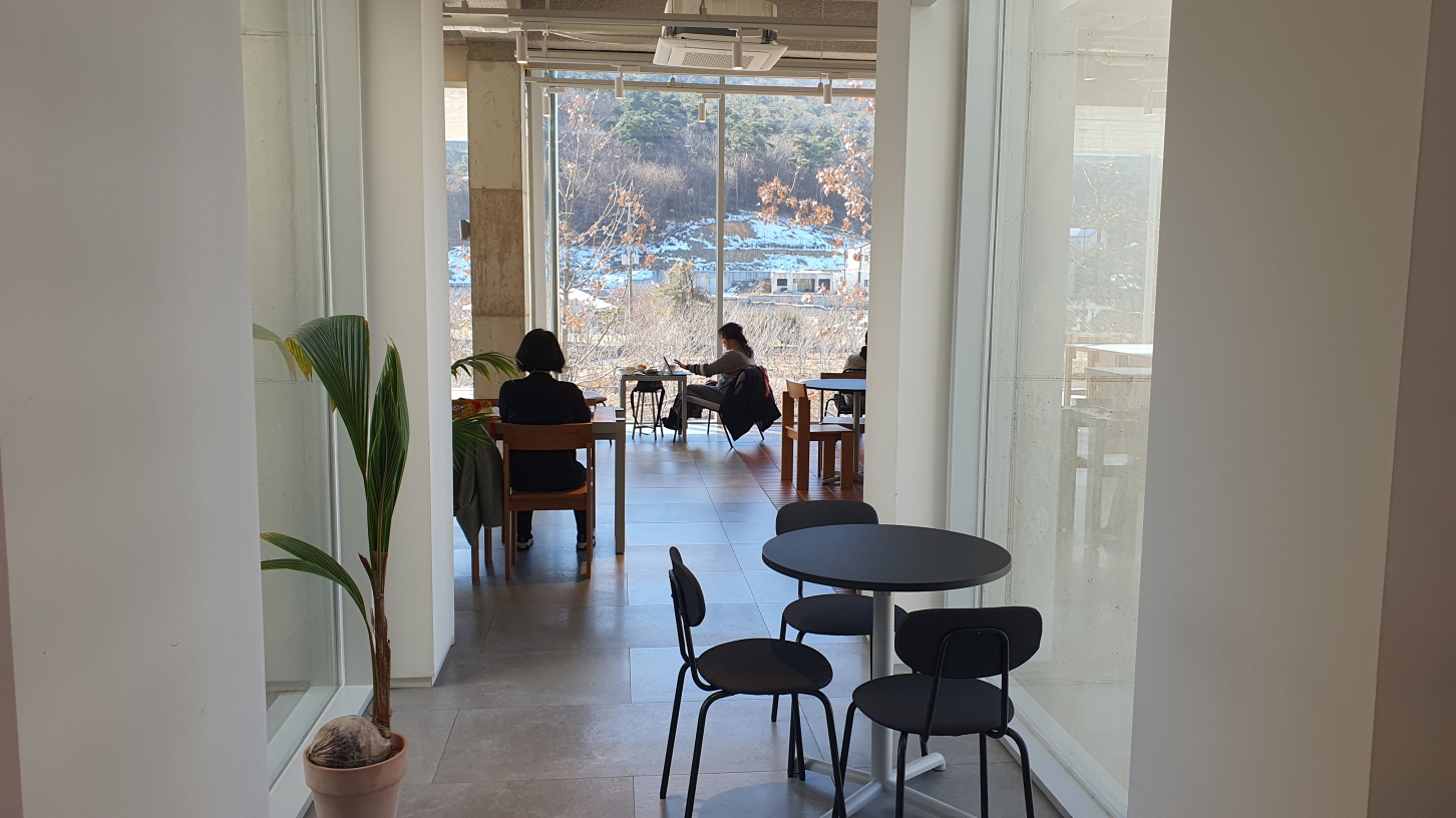 창가에 이 공간이 좋았지만, 햇빛이 너무 내리쬐니 아무도 앉지 않더라고요.