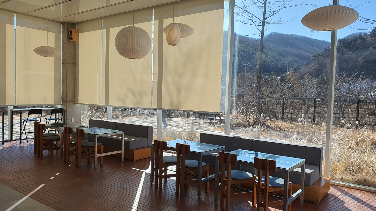 점심식사 후에 바로 방문했더니 햇살이 쨍하고 안으로 들이칩니다. 블라인드로 가려주고,