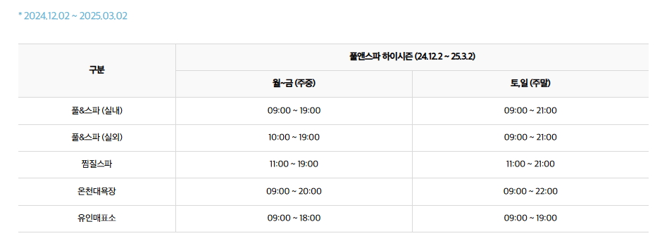 실외 스파: 10:00 ~ 19:00