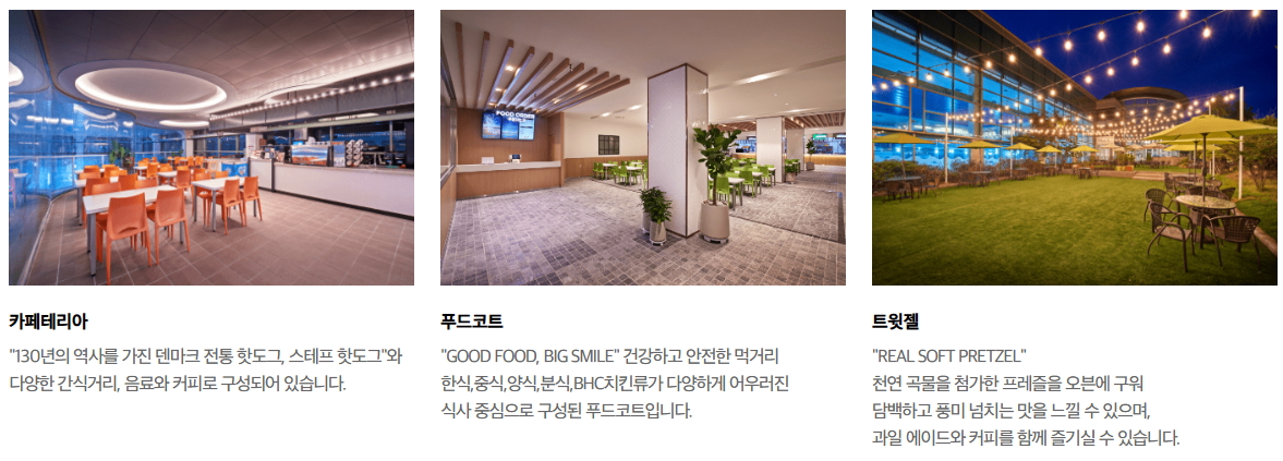 ✔ 실내 카페 & 푸드코트에서 다양한 음식 구매 가능