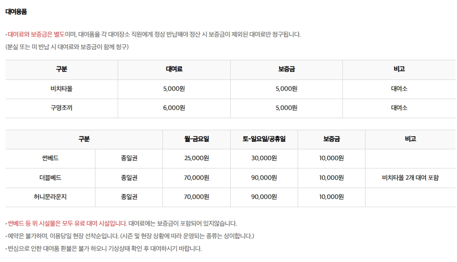 비치타올, 구명조끼 등 대여용품도 구비되어 있습니다.