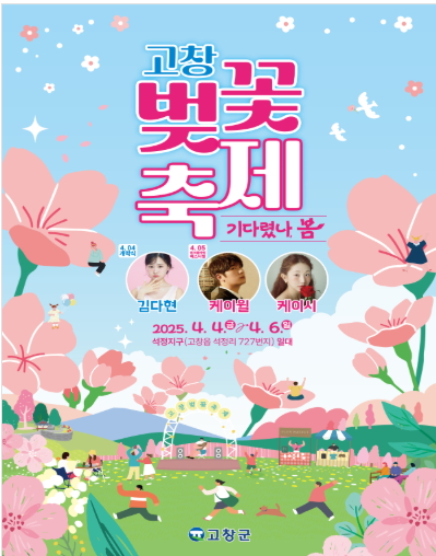 고창 벚꽃축제는 전라북도 고창군에서 열리는 봄 축제로, 선운사와 고창읍성 등 역사적인 명소 주변에 펼쳐진 벚꽃이 유명합니다. 특히, 선운사 진입로의 벚꽃길은 '선운사 동백꽃과 벚꽃의 조화'로 잘 알려져 있습니다. 축제 기간에는 전통 문화 공연과 지역 특산물 판매 등이 이루어져 지역 문화를 체험할 수 있는 기회도 제공합니다.