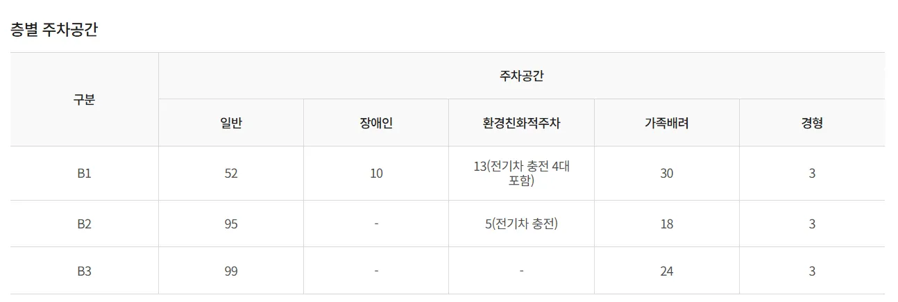 - 지하 3층: 99대, 큰 차량 주차도 가능하고 공간이 넓습니다. 주말이나 행사시에는 바로 가는 것을 추천합니다.