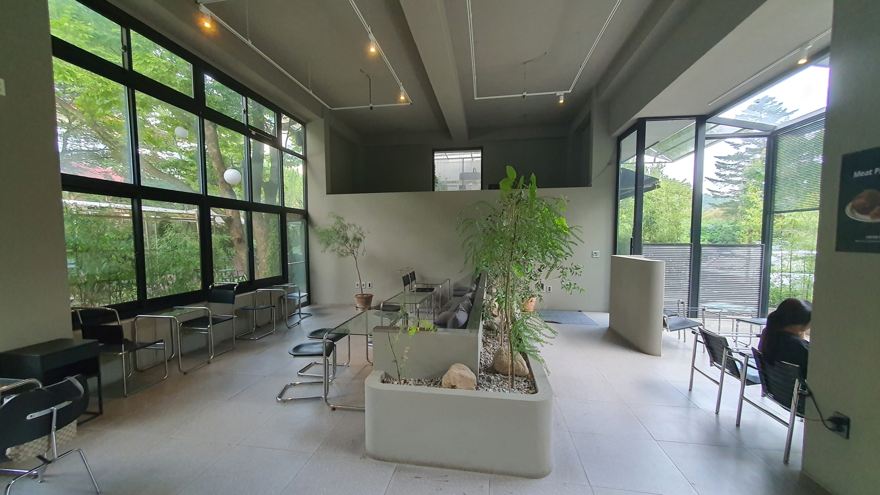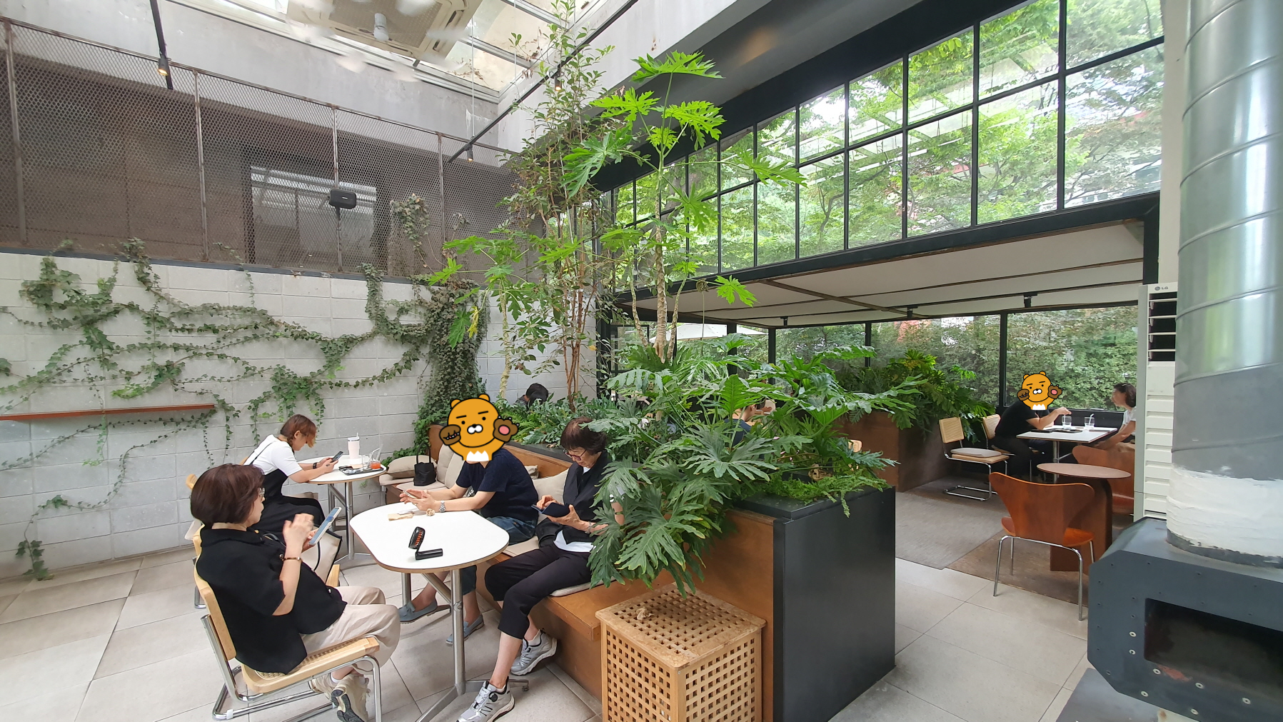 본 건물의 공간이 없다면 여기 앉겠지만, 층고가 낮아서 옆 공간처럼 좋다싶은 느낌은 없어요.