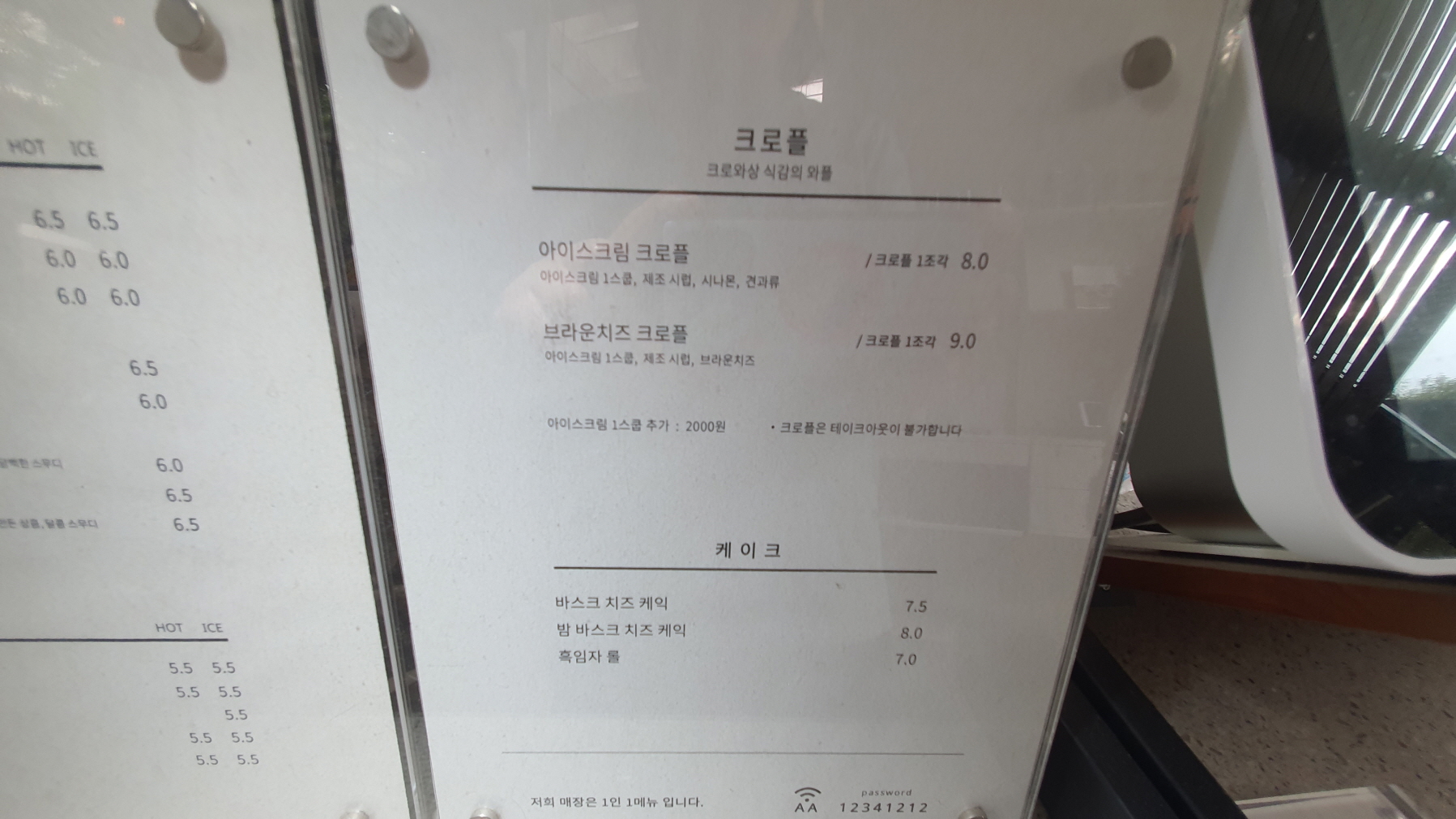 아인슈페너 6,000원(라떼 6,500원)
