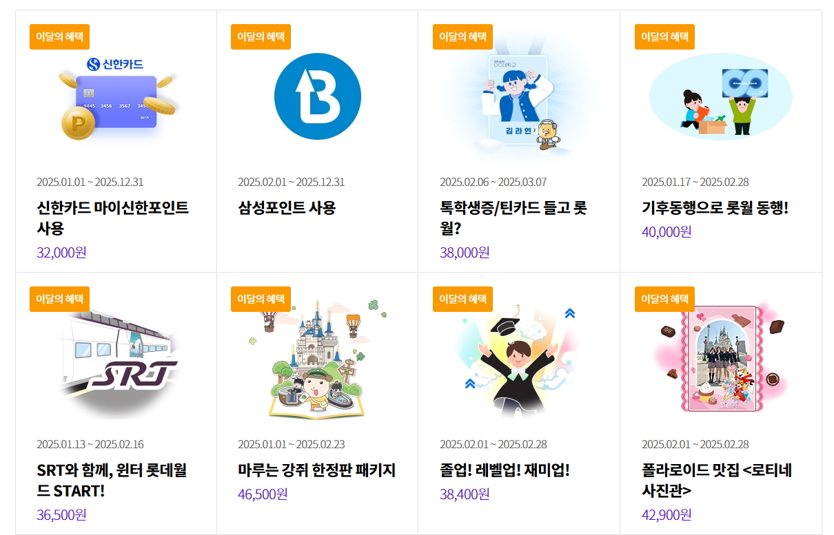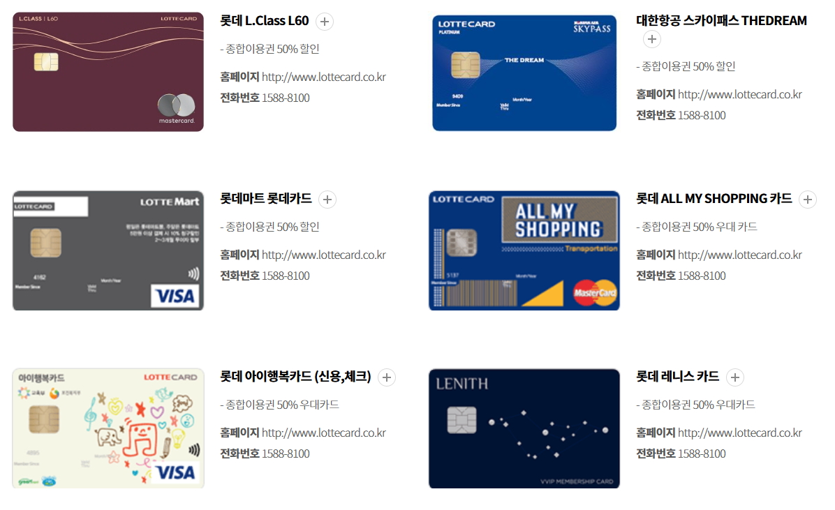 이 카드들은 대부분 종합이용권의 50% 할인을 제공합니다. 각 카드사의 할인 조건과 혜택은 다를 수 있으니, 카드사 홈페이지나 롯데월드 공식 홈페이지에서 자세한 내용을 확인하세요.