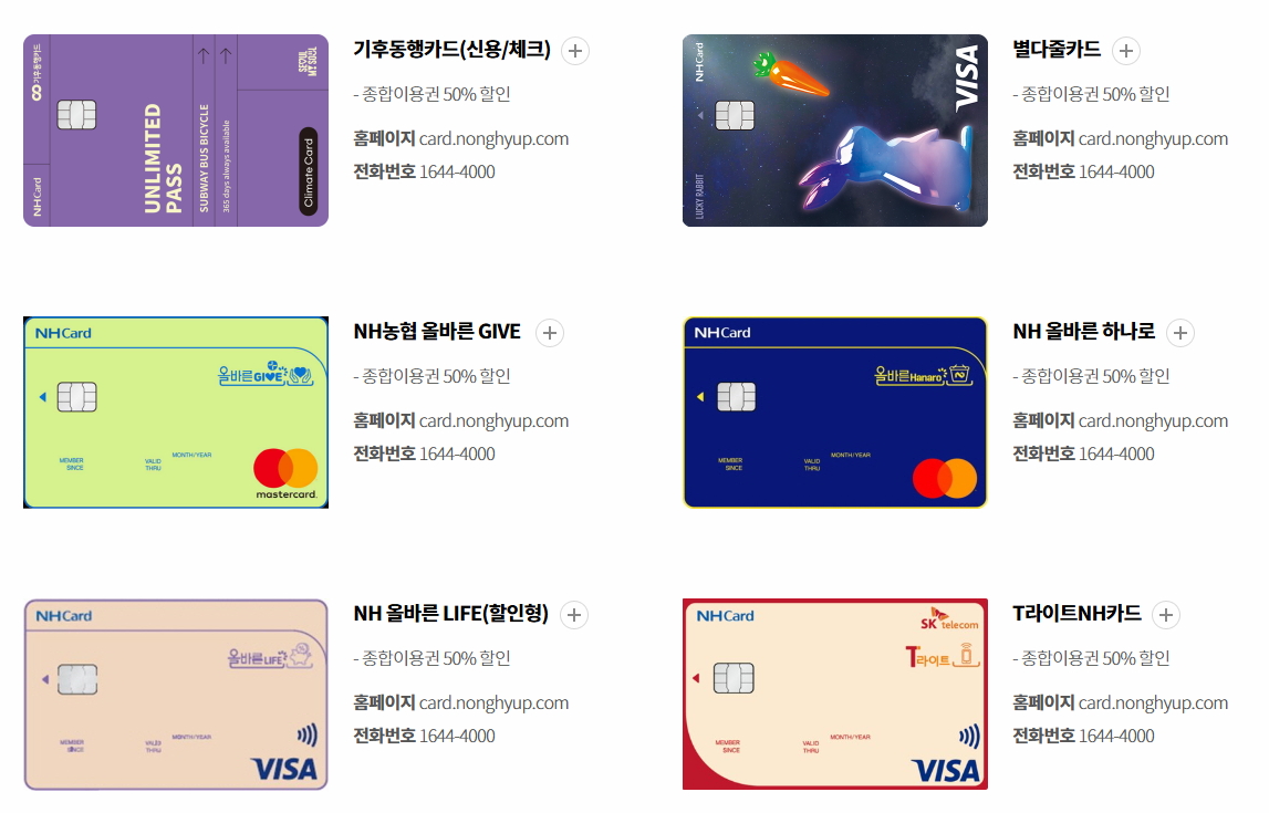 - NH농협카드: 최대 50% 할인