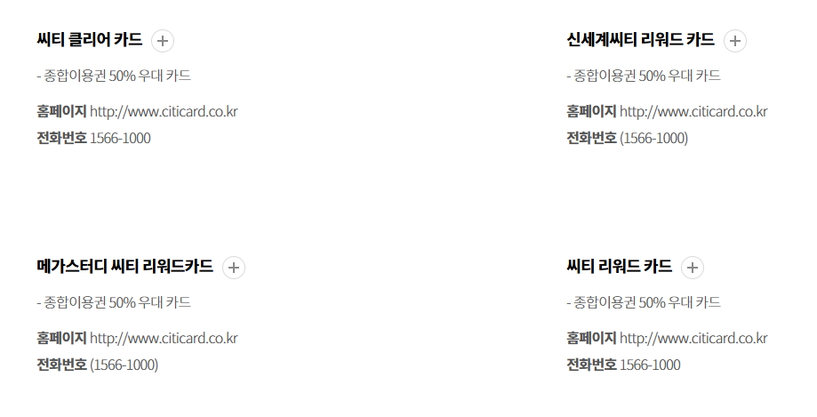 씨티 클리어 카드, 씨티 리워드 카드 등 4개 씨티카드 50% 할인 적용