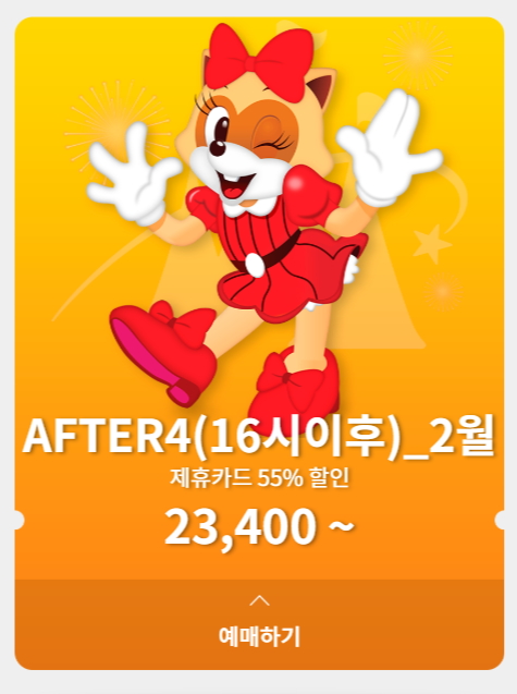 제휴카드 4시이후권 본인 55%, 동반 1인 30% 할인