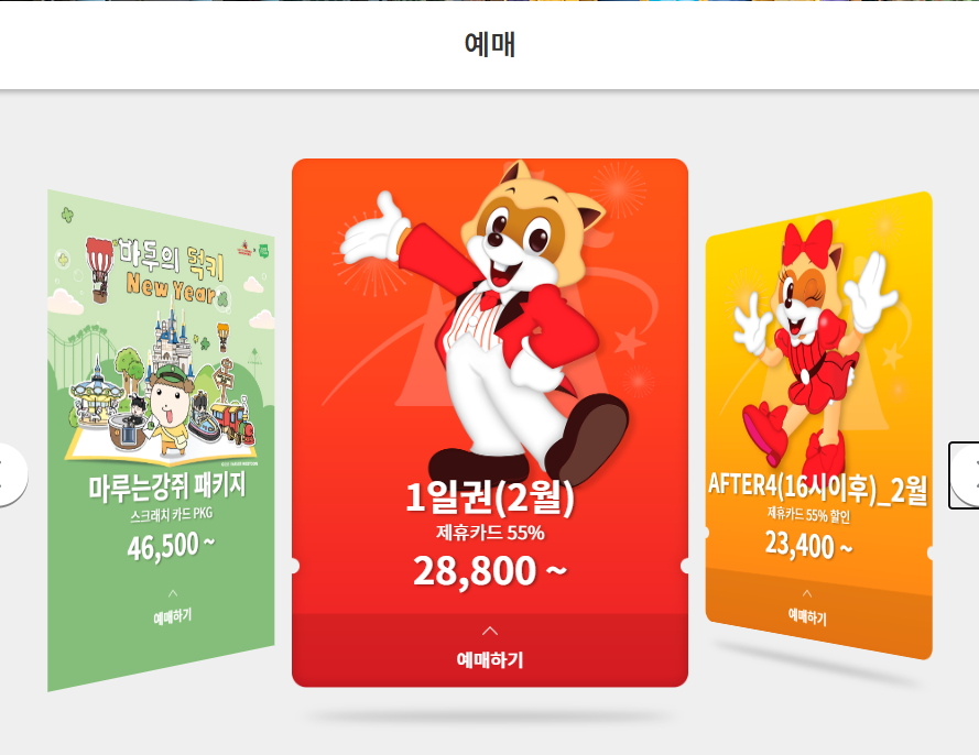3. 예매 사이트에서 1일권(2월)을 선택합니다.