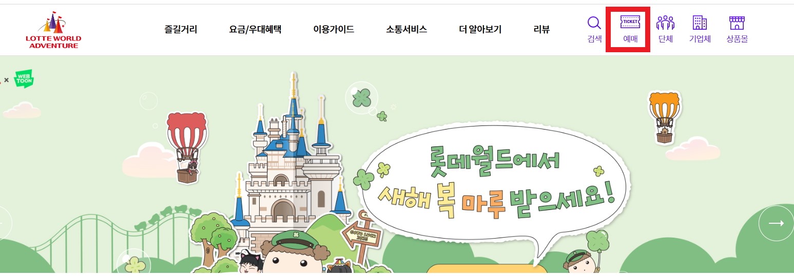 1. 롯데월드 어드벤처 공식 홈페이지에 접속합니다.