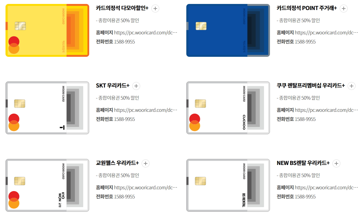 => 등 9개 우리카드 50% 할인 적용