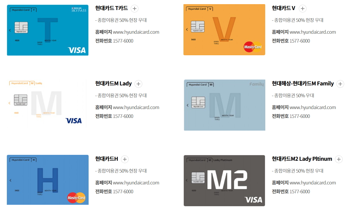 등 6개 현대카드 50% 할인 적용,
