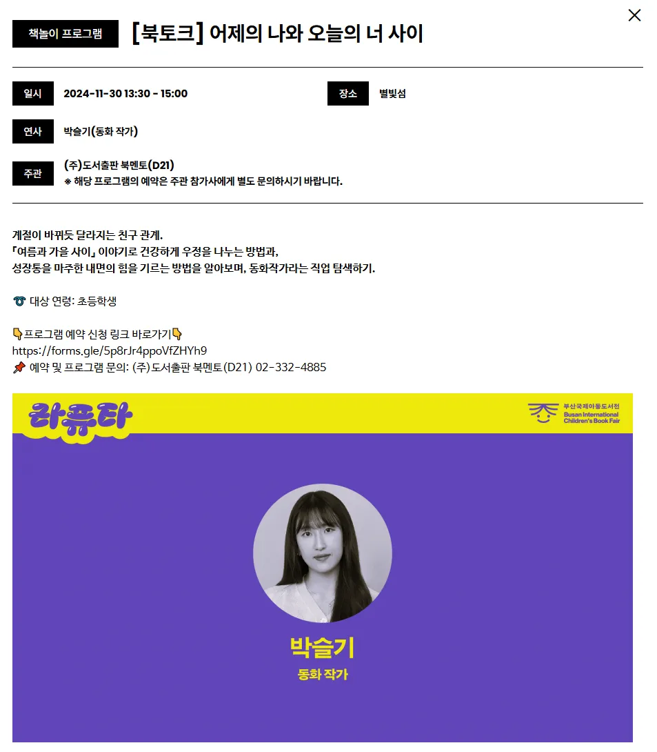 2024 부산국제아동도서전 일정, 입장료, 프로그램, 무료입장 방법
