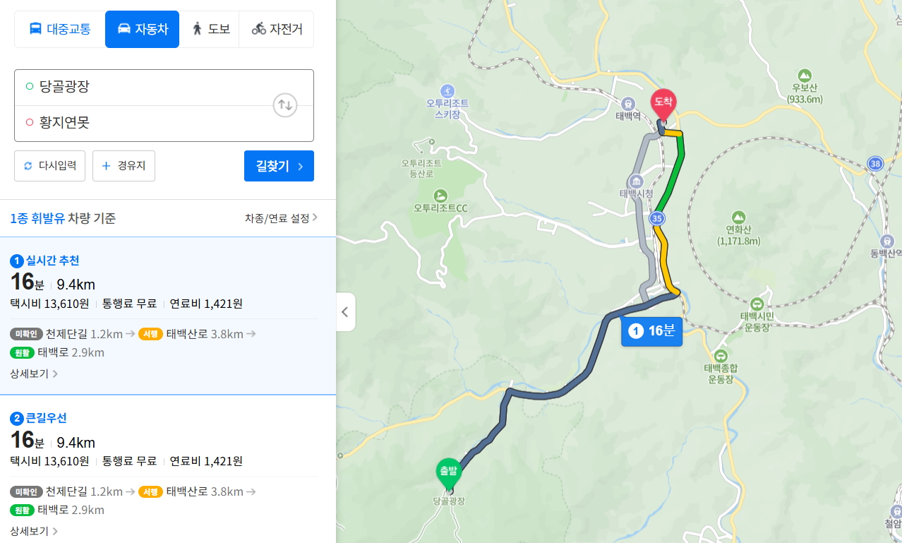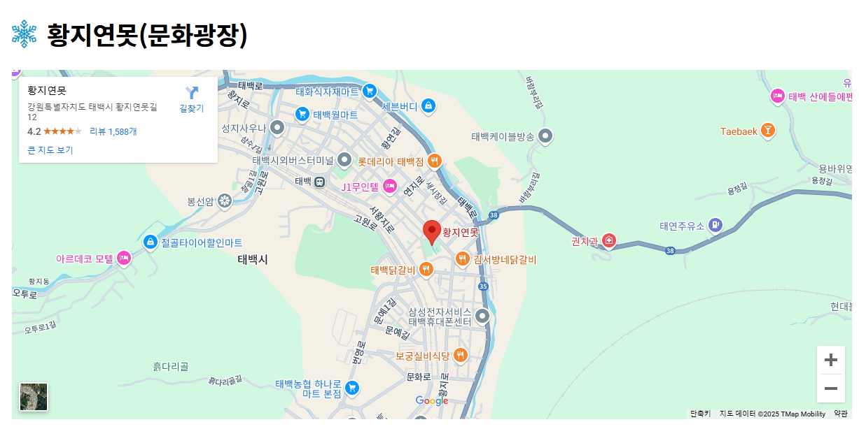 주요 행사장인 태백산국립공원과 황지연못은 차로 20분 정도 걸립니다.