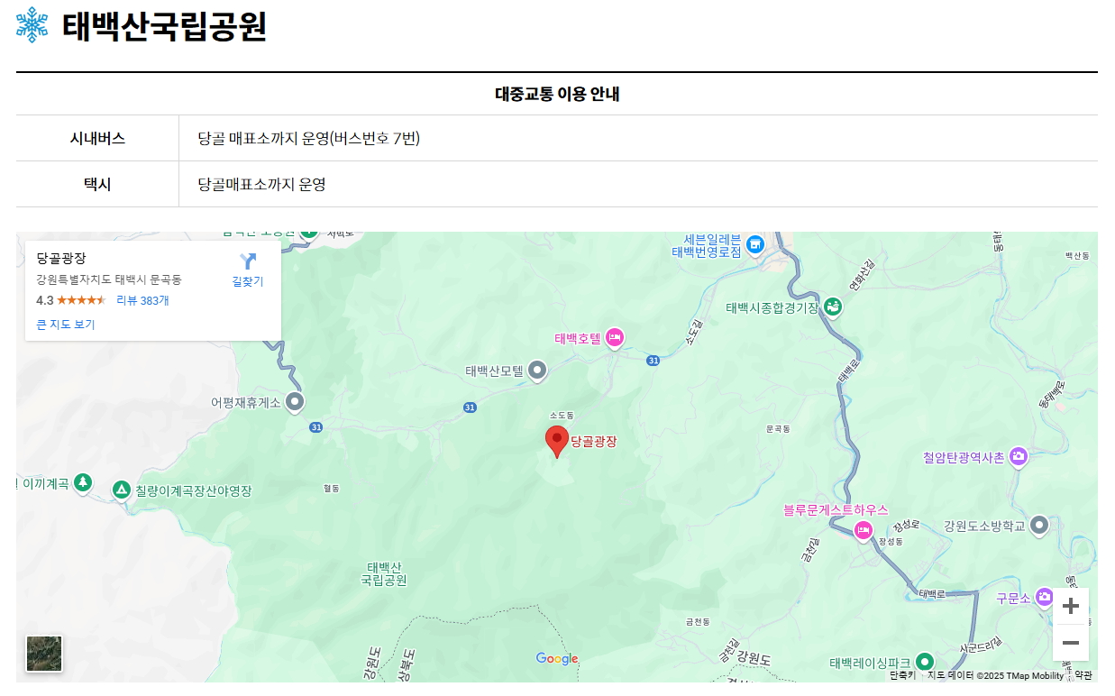 태백산국립공원 주차장